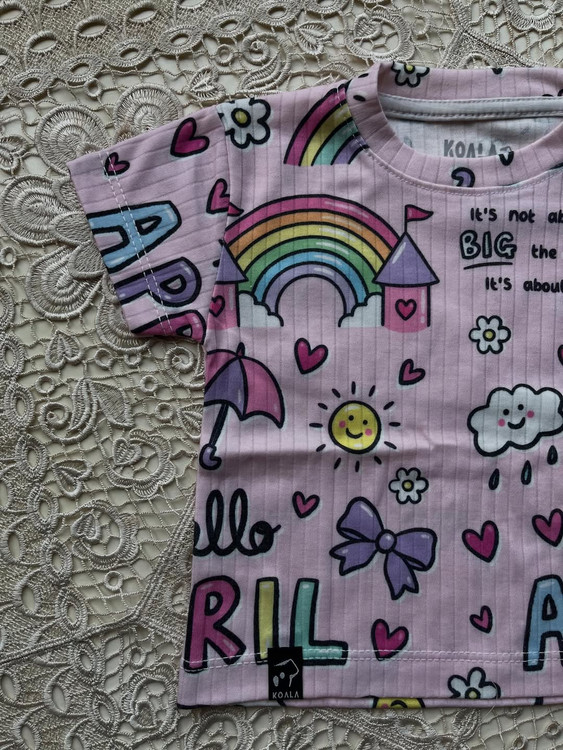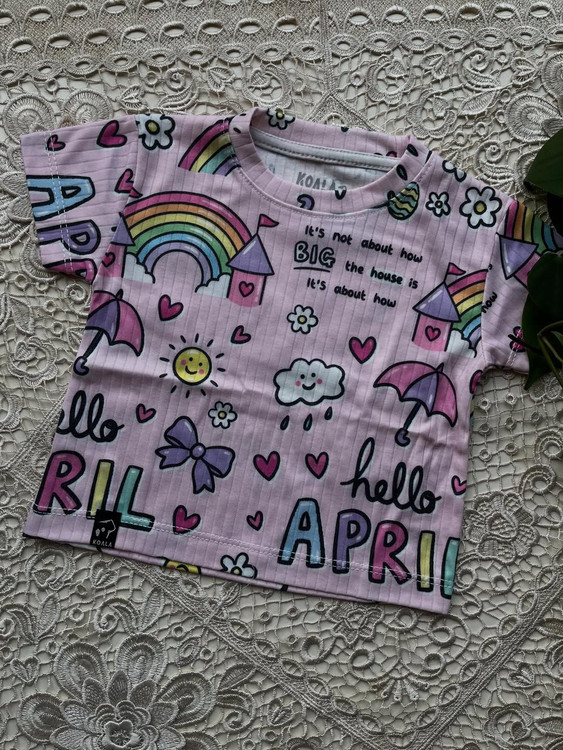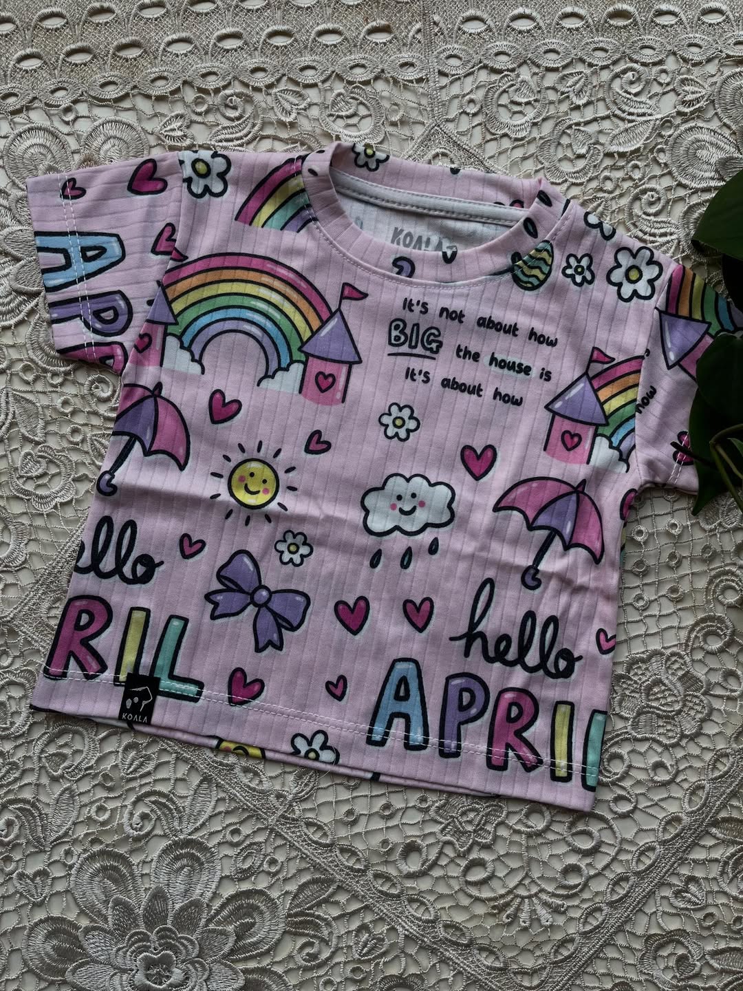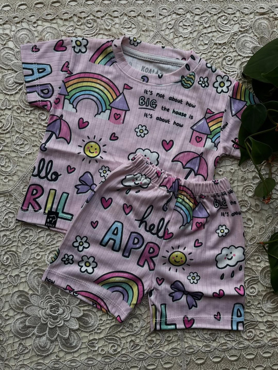 ست راحتی دخترانه جنس نخ پنبه طرح آپریل رنگ صورتی