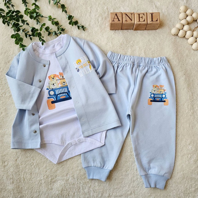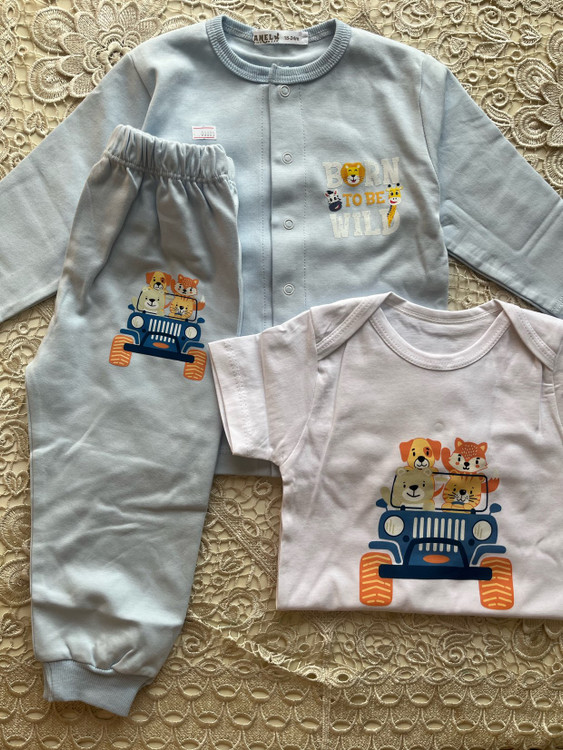 سه تکه نوزادی طرح حیوانات شامل بلوز و شلوار و بادی