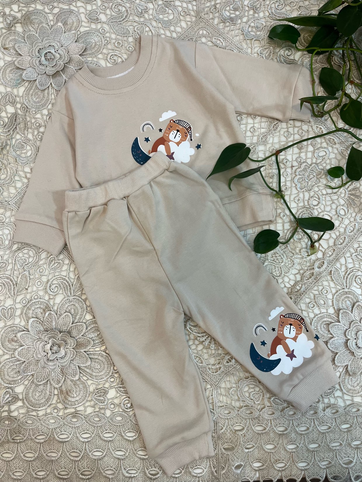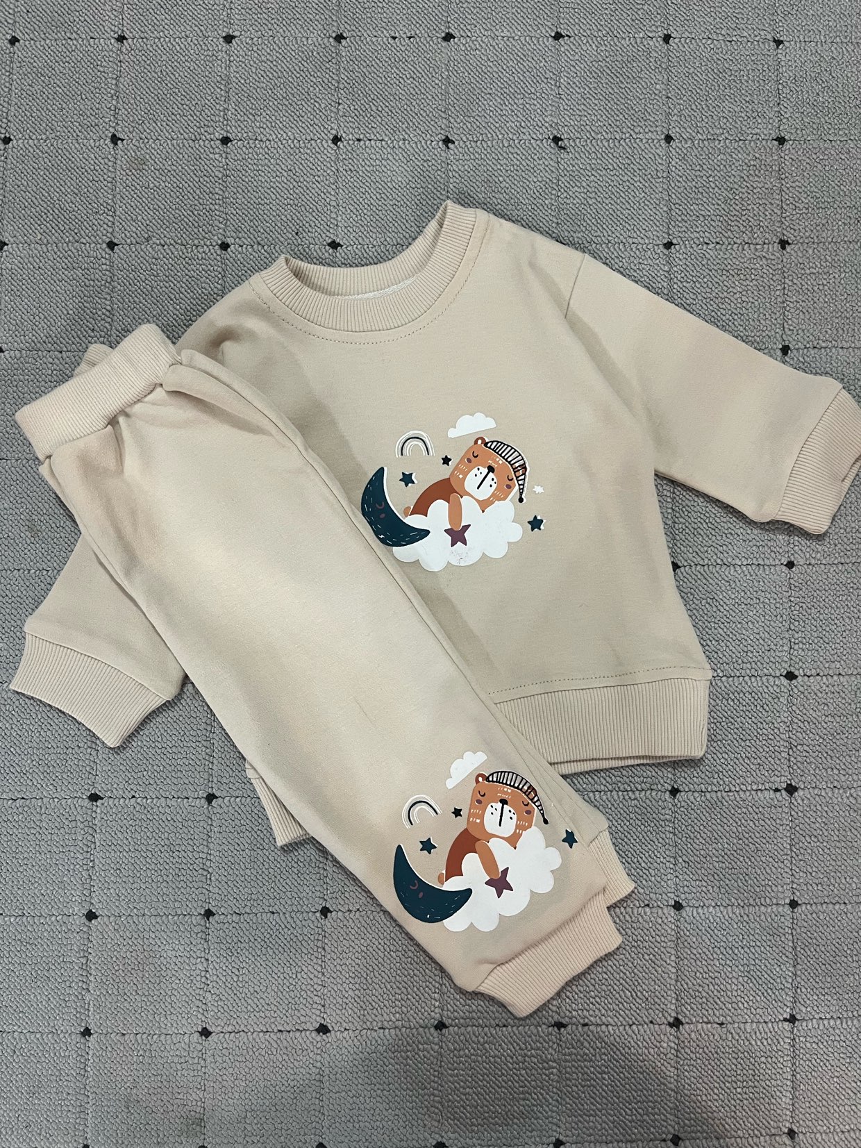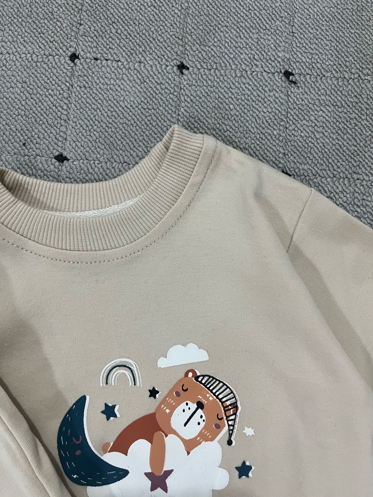 بلوز و شلوار نقلی رنگ کرم جنس نخ پنبه طرح خرس خوابالو