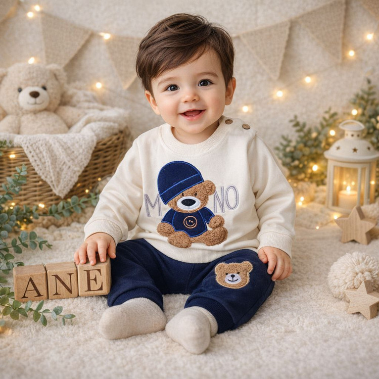 بلوز و شلوار ١٠٠ درصد پنبه دورو طرح تدی سایز۶-٢۴ ماه