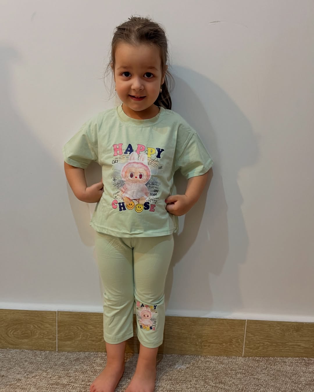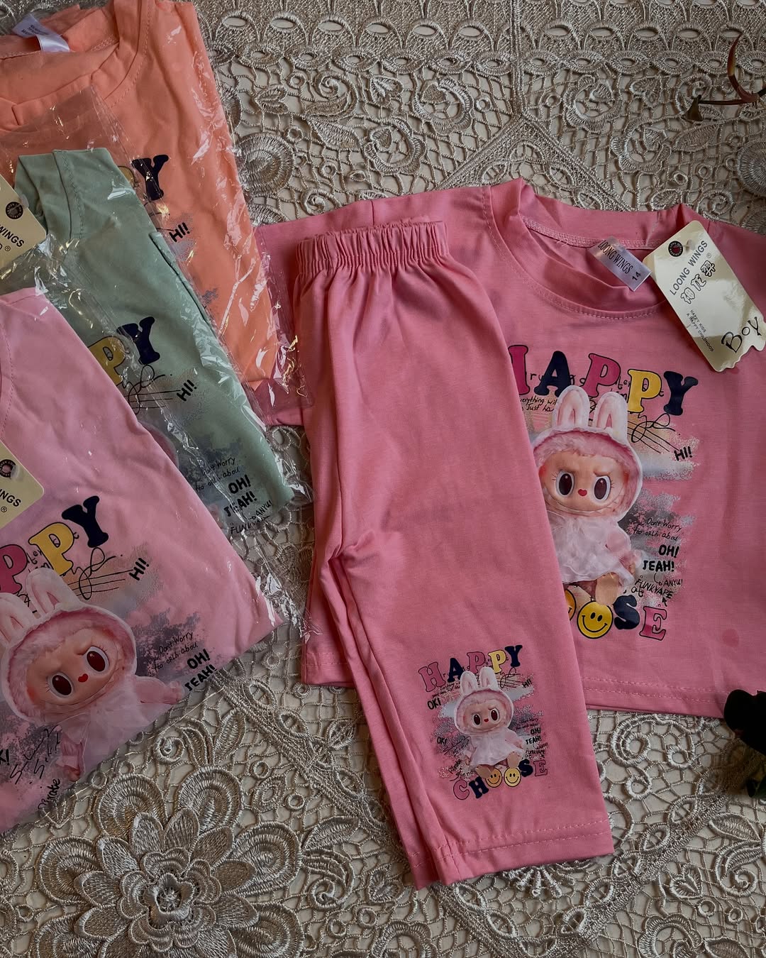 کراپ و لگ دخترانه جنس نخ پنبه طرح لبولبو در ۴ رنگ