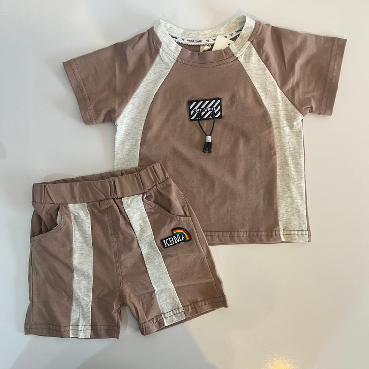 ست پسرانه نخ پنبه رنگ کرم بسیار لطیف مناسب پوست نوزاد و کودک