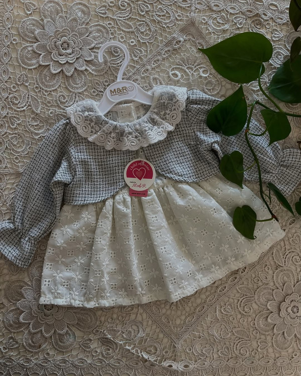 کت و سارافون نقلی خامه دوزی وارداتی با یقه دانتل سایز۶ تا ١٨ ماه