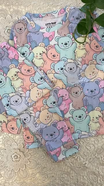 ست بلوز و شلوار راحتی مناسب دختر و پسر طرح خرس رنگی مارک لیتل بر