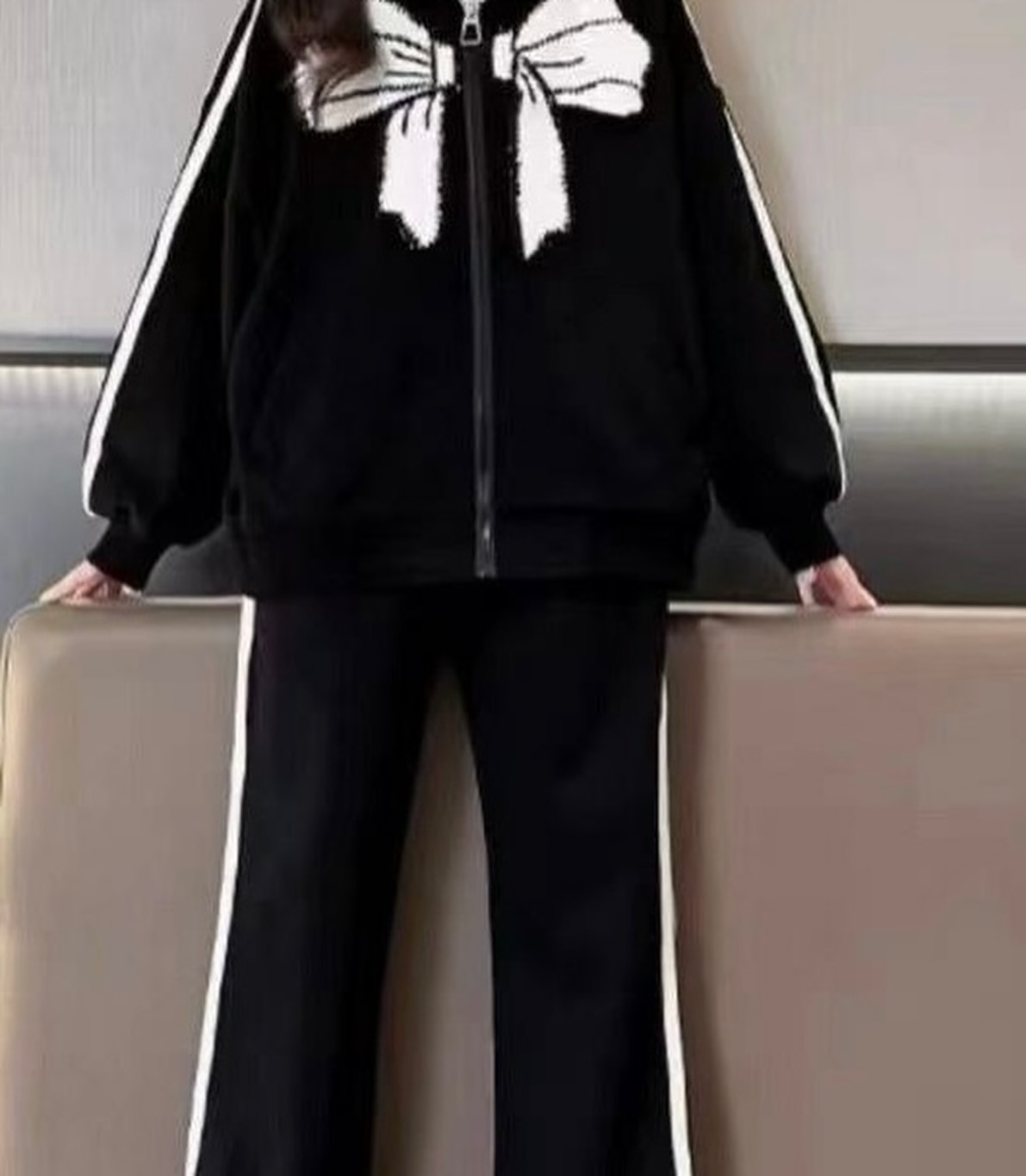 سایز ۱۵۰ قد سویشرت ۵۴ پهنا سویشرت ۵۱ آستین از یقه ۶۱ قد شلوار ۸۳