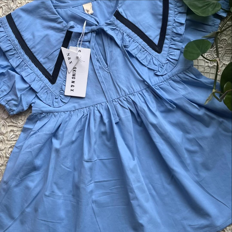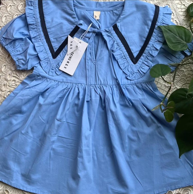 پیراهن وارداتی دخترانه جنس کتان مدل چین آستین و یقه