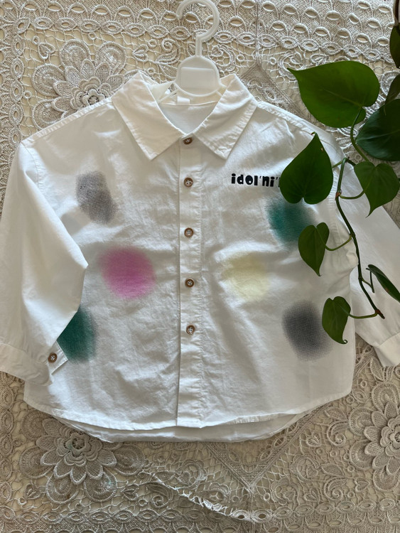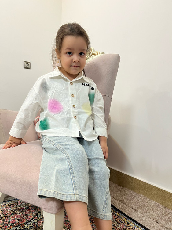 شومیز سفید وارداتی طرح رنگی جنس عالی و خوش استایل